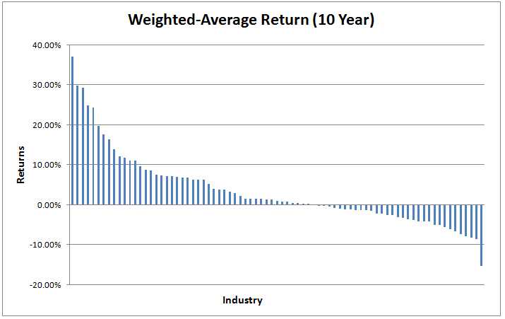 This industry has a lot of impact of commodity prices. Amount of oil pumped on a single day is almost fixed. Large percentage of operating costs is also fixed. So if oil price rises it can result in higher profits because costs are almost fixed. This reliance on commodity prices makes profit highly variable.