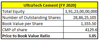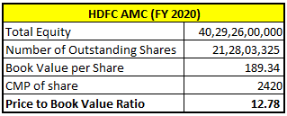 As we can see, price to book ratio of HDFC AMC is coming higher but it cannot be said that the investors are overpaying by seeing only this ratio. As the company is mainly engaged in providing services, its major assets i.e. its employees, their cost is deducted in profit and loss account and thus having lower assets and overall net assets are also lower. But in UltraTech cement which is an asset heavy company, its major assets are on balance sheet only and thus higher net assets also.